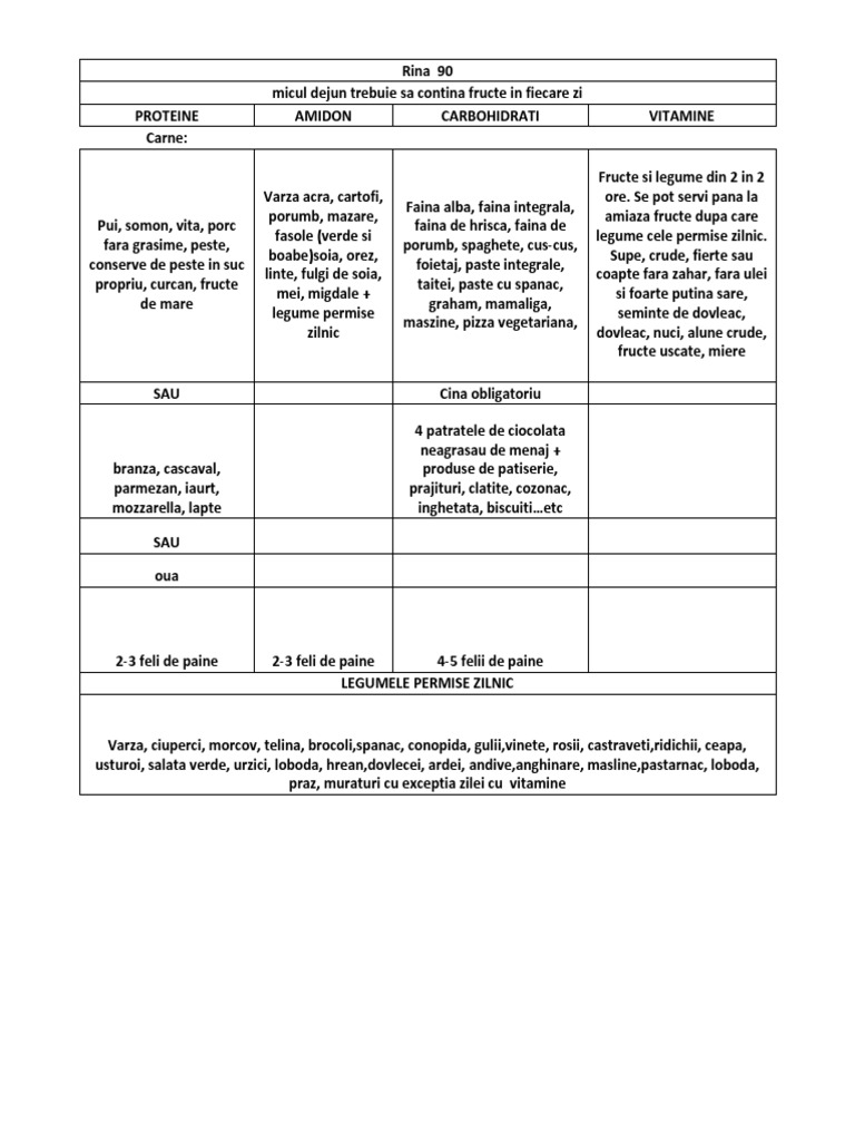 Informatii utile pentru a obtine rezultatele dorite. Vezi mai multe alimente in dieta rina meniu zilnic tabel (mai jos). R1 ziua 10 amidon idee meniu dieta rina.