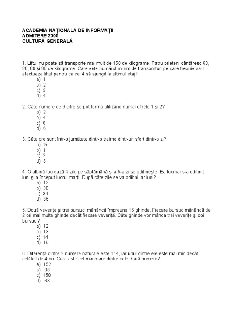 untuk "Intrebari De Cultura Generala Cu Raspunsuri Pe Loc"